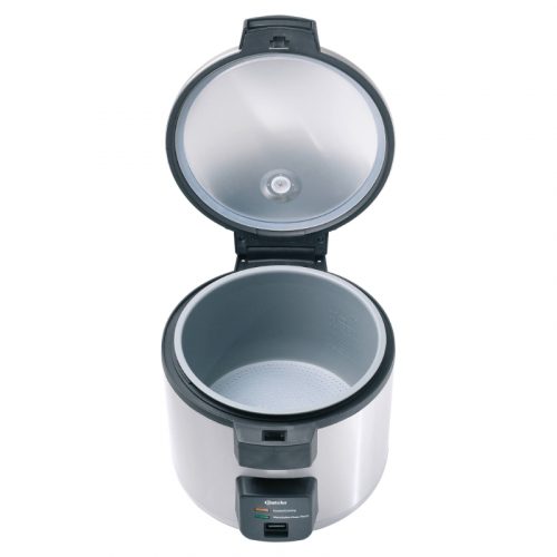 Perfekt gegarten Reis kochen und warmhalten für bis zu 40 Portionen mit dem Reiskocher 8 L. Mit der beiliegenden Silikonmatte wird das Anbrennen im Innentopf verhindert und erleichtert die Reinigung.